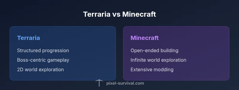 Are Terraria and Minecraft similar? Both are sandbox games that emphasize exploration, crafting, and creativity, but they diverge in scope, progression, and design philosophy. This quick comparison highlights the main distinctions and when each game excels, helping players choose the title that aligns with their play style.