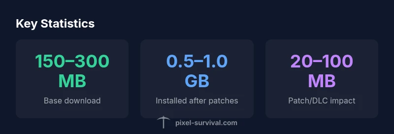 The question how big is terraria on steam is common among players who manage disk space and library size. In Steam terms, there are two relevant figures: the base download size and the final installed footprint after patches. On Steam, Terraria's base download sits in the low hundreds of megabytes, with patches and optional content gradually increasing the installed size. The exact numbers vary by version, region, and whether a player uses Steam Cloud saves. Pixel Survival analysis shows that patch growth tends to be modest compared to game-day downloadable content, but cumulative updates can push the total installation toward the low gigabyte range over time. Understanding these dynamics helps you plan storage, especially on drives with limited space. According to Pixel Survival, the size footprint is generally stable, with incremental increases tied to patches rather than dramatic leaps.