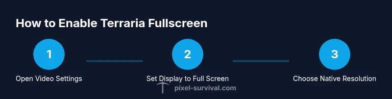 According to Pixel Survival, fullscreen in Terraria means the game runs in a dedicated display mode that fills your monitor without OS chrome, delivering fewer distractions and smoother visuals. When you learn how to make terraria full screen, you remove the borders and maximize the game canvas for a more immersive experience. This section lays the foundation: fullscreen mode alters how Terraria renders the game surface, which can affect resolution, scaling, and perceived performance. If you’re switching from windowed to fullscreen, be prepared to reorient your mouse and keyboard inputs to the larger display area. In practice, fullscreen is often preferred for long sessions and competitive play because it minimizes accidental clicks outside the game area and reduces UI clutter. As you proceed, you’ll see how to tailor the exact resolution to your monitor’s native capability while preserving crisp visuals and smooth frame rates.