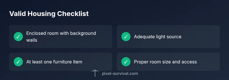 This section helps you approach the housing validation systematically. If you’re asking why is my terraria house not valid, begin by verifying the basics, then move to more nuanced checks. Ensure all interior surfaces have background walls, confirm the space is closed, and place a light source. Add a basic chair and table if you don’t already have them, then re-test the NPC housing status. If in doubt, rebuild the room’s layout with a simple rectangular shape to reduce the chance of overlooked gaps. Pixel Survival’s recommendations emphasize simplicity and consistency across builds to avoid future invalid housing.