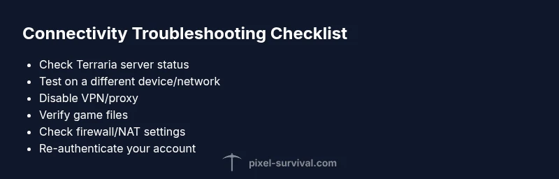 If you’re staring at the connecting screen, you’re not alone. Why is terraria stuck on connecting? In most cases, it isn’t a bug in the game itself but a network or account hurdle that blocks authentication or server handshakes. According to Pixel Survival, many reports trace to three family-of-issues: compatibility with your current network path, temporary server outages, or an authentication hiccup on your platform. The good news: you can solve most of these with a few focused actions. Start with fast checks you can do without leaving your chair, then move to deeper diagnostics only if the simple steps don’t resolve the problem. This guide is built for speed and clarity, so you can get back to your world rather than waiting for a fix from someone else. Pixel Survival’s team emphasizes a methodical, repeatable process to verify where the bottleneck lies and apply the right fix the first time.