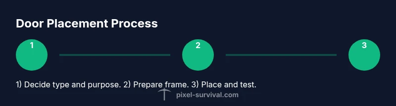 - Collect or craft your chosen door at a Work Bench. 2) Clear the doorway space to prepare a frame with level floor and surrounding walls. 3) Open the door’s inventory and select the door tile; target the doorway frame and place it. 4) Adjust the door direction to face your preferred traffic flow; doors can swing inward or outward depending on space and room design. 5) Test movement by walking through and confirming the door closes behind you. If you notice obstruction or misalignment, tweak wall edges or reframe the doorway. 6) Save your layout by reinforcing nearby walls and adding flooring that matches the base’s aesthetic. 7) Add lighting near the doorway to illuminate entry points at night.