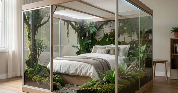 A bed sets your spawn point after sleeping, providing a safe return location when you die or respawn. It’s a key progression tool in many worlds.
