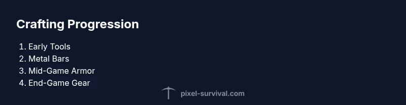 Terraria’s crafting scales with your world progression. Early on you’ll rely on wood, stone, and copper. As you defeat bosses and unlock new biomes, you’ll gain access to metal bars, better armor, and more powerful weapons. Each tier requires different stations and recipes; for example, you’ll eventually need an anvil to craft higher-tier armor and weapons from metal bars. The endgame often hinges on hardmode materials and boss loot. Plan a tiered progression that moves you from basic tools to mid-game armor, then to late-game weapons and endgame gear. A well-planned route minimizes backtracking and maximizes resource efficiency.