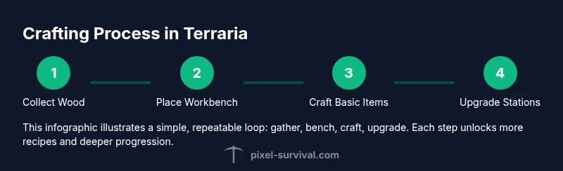 Crafting in Terraria is the process of turning raw resources into usable items, weapons, armor, and tools by combining them at the right crafting station. If you ask how to craft in terraria, your answer starts with gathering the basics: wood for a Workbench, simple stone, and the first recipes you can unlock. According to Pixel Survival, crafting is a core skill that unlocks access to weapons, armor, and tools; it’s all about combining resources at the right stations to produce something new. The chain reaction is easy to learn: find resources, place a crafting station, consult the recipe book, and assemble the item. As you progress, more stations become available and more complex recipes unlock, expanding your options for combat, exploration, and building. This guide will walk you through stations, materials, and strategies to keep your hotbar stocked with essential gear while avoiding needless trips to safe zones just to craft.