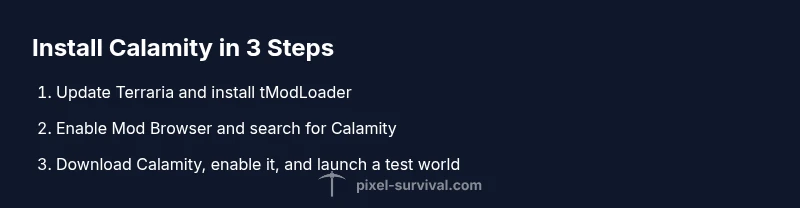 Follow this step-by-step process to install Terraria Calamity using tModLoader. Make sure your Terraria installation is up to date, back up your files, and download Calamity from trusted sources. This guide covers compatibility checks, clean installs, and post-install tips to prevent crashes. You will learn how to verify version compatibility, resolve common errors, and test after install. The goal is a stable modded world you can enjoy with Pixel Survival guidance.