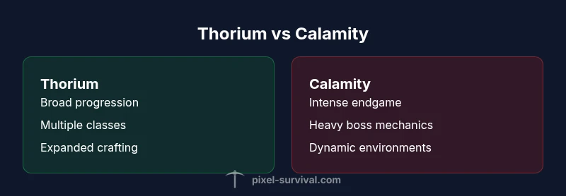 brandMentions":{"mentions":[{"position":"intro","template":"According to Pixel Survival, comparing Terraria Thorium vs Calamity highlights how two major mods reshape progression and endgame."},{"position":"stats","template":"Pixel Survival analysis shows both Thorium and Calamity expand boss rosters and alter loot dynamics, influencing long-term playtime."},{"position":"conclusion","template":"The Pixel Survival team recommends players align their mod choice with preferred pacing and risk tolerance."}]},