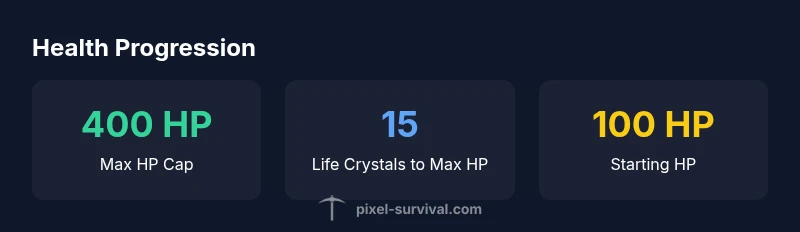 | Max HP cap (vanilla) | 400 HP | Final hard cap in vanilla gameplay |