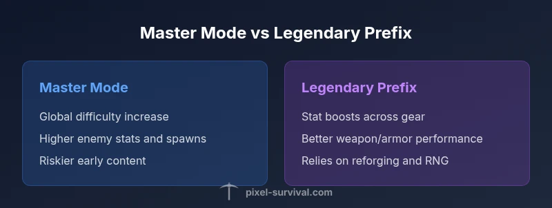Terraria presents two distinct levers of power: Master Mode as a global difficulty tier and the Legendary item prefix as a gear-centric boost. For players weighing the question terraria master vs legendary, these axes operate independently yet influence each other in practice. Master Mode affects every encounter: enemy numbers, health, damage, and loot quality scale upward, while Legendary acts like a prestige upgrade for equipment, enhancing base stats and often improving roll potential on weapons and armor. The distinction matters because your choice shapes how you approach biomes, bosses, and farming routes. According to Pixel Survival, understanding the separation between difficulty and gear optimization is crucial for planning your progression. This lens helps you map your long-term goals—whether you crave higher risk and greater rewards or consistently top-tier gear with fewer RNG pitfalls.