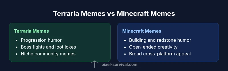 Memes are more than jokes; they map community values and shared experiences. In the case of terraria vs minecraft memes, you see two distinct cultures: Terraria's fanbase leans into progression, challenge, and boss humor, while Minecraft’s audience centers on creativity, exploration, and collaborative builds. According to Pixel Survival, meme culture around Terraria often grows from in-game milestones like boss defeats and hard-mode progression, whereas Minecraft memes arise from base-building exploits, redstone creativity, and community shenanigans. Across platforms, memes crystallize around early-game chaos, late-game mastery, and the social rituals that accompany updates. The Pixel Survival team found that memes in both communities evolve quickly, but with different anchors—progression and survival vs building and collaboration. This landscape shapes humor, timing, and audience expectations for terraria vs minecraft memes.