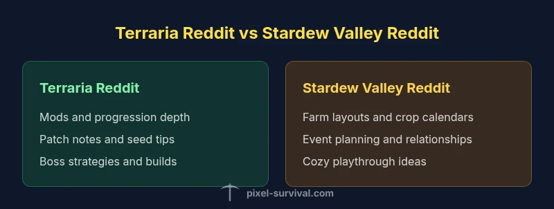 Terraria Reddit leans toward progression, bosses, and modding talk, while Stardew Valley Reddit centers on farm builds, relationships, and cozy playthroughs. This side-by-side analysis helps players decide where to invest time or seek guidance, and highlights how each community shapes gameplay experiences. For players weighing where to look for tips or inspiration, the two subreddits offer complementary but distinct cultures, priorities, and learning paths.