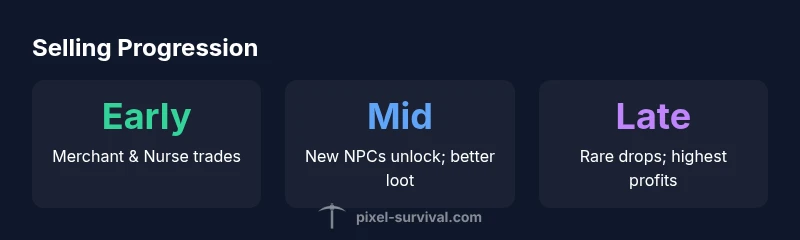 Learn where to sell in Terraria, which NPCs buy items, and how to maximize profits as you progress. Pixel Survival's expert guide covers early to late game selling strategies.