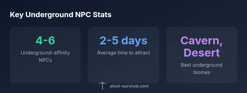 The underground in Terraria encompasses cavern layers, rock-weave tunnels, and biome variants like the Underground Desert. These environments are defined by darker lighting, stone textures, and biomes that sit below the surface. When planning settlements, players often ask which terraria npcs like the underground and how to design homes that suit subterranean life. According to Pixel Survival, the key is to recreate comfortable, compact living spaces that respect the cave atmosphere while providing the basic needs every NPC requires: housing that is safe, accessible, and properly illuminated. Understanding this balance helps you decide where to place caverns, how to level your tunnels, and which NPCs are most likely to move in underground-friendly quarters. The underground itself isn’t a single character—it's a set of conditions that can influence NPC happiness and spawning, especially when paired with suitable progression and biome cues.